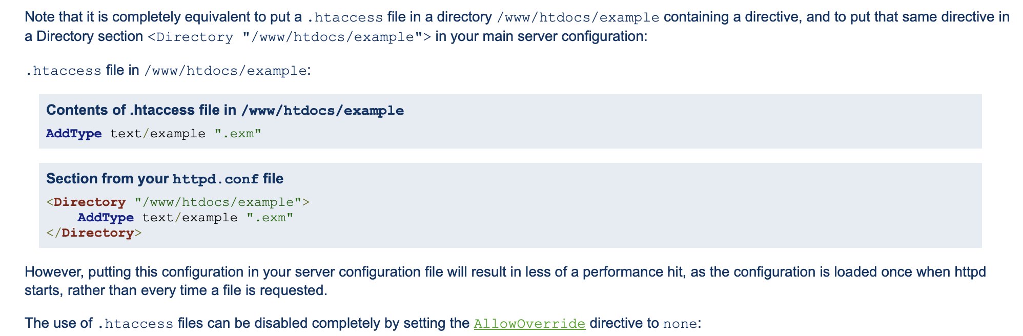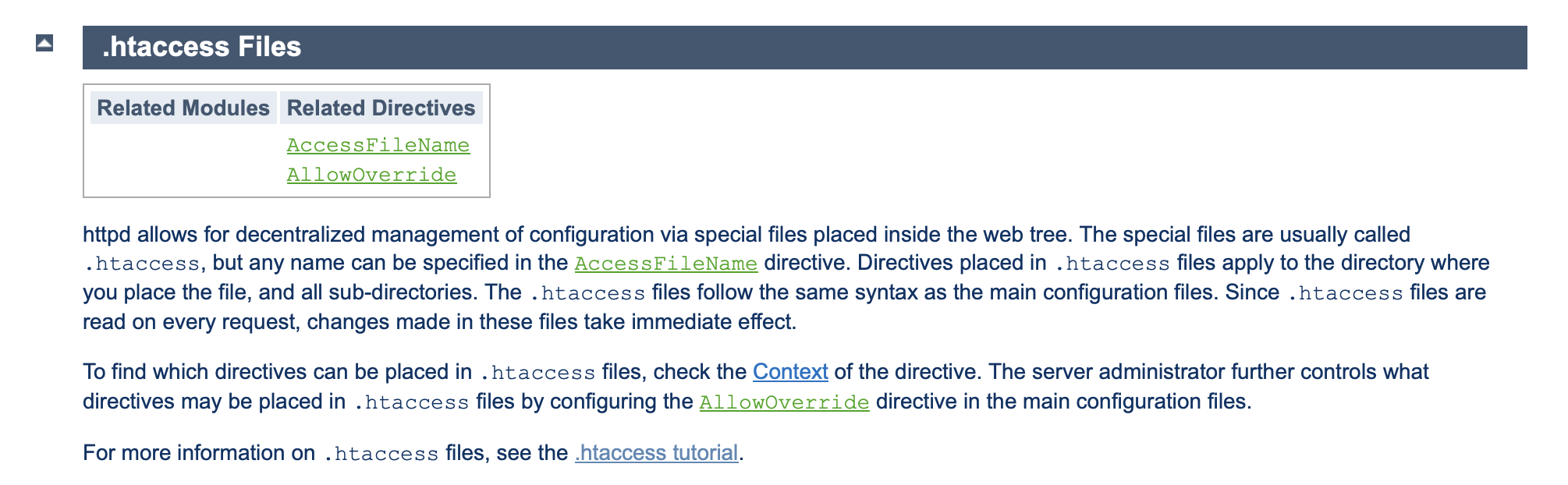 “httpd allows for decentralized management of configuration via special files placed inside the web tree.” The lab’s name, Access, and uploads landing under the web root pointed directly toward .htaccess.