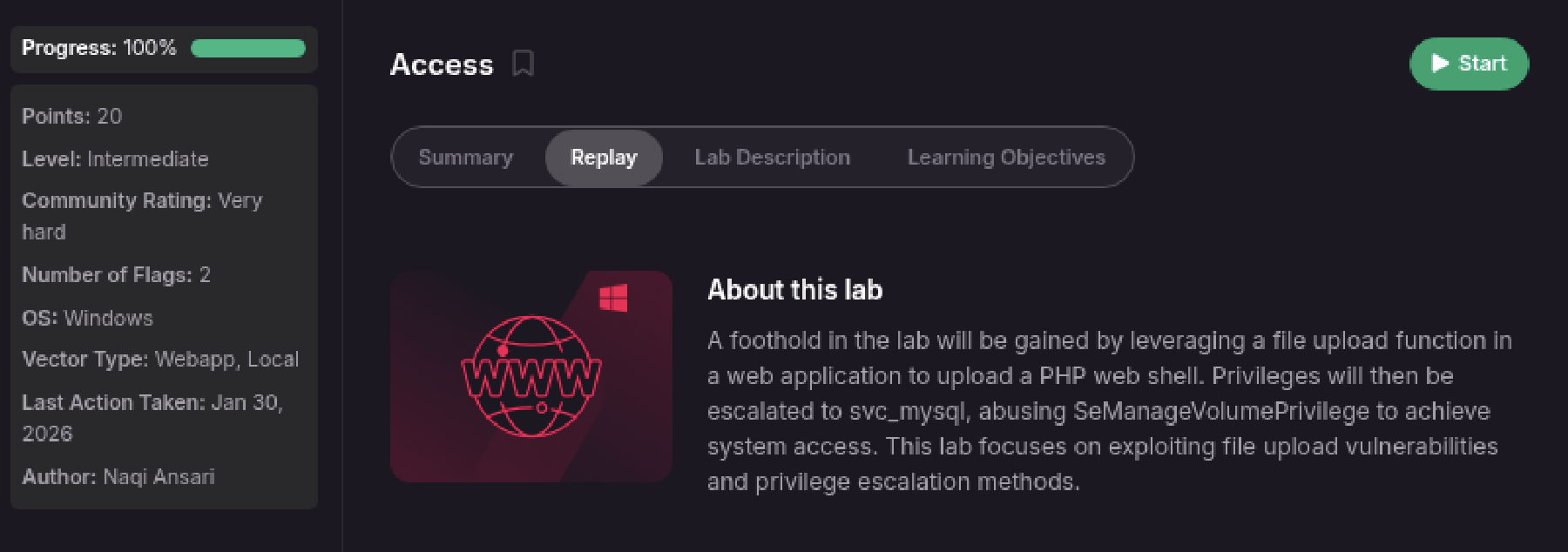 Access (PG Lab) began with a web-layer attack. A restricted file upload proved insufficient, unfolding into a chain of access weaknesses. This aligns with James Reason’s Swiss cheese model: security failures occur when multiple small weaknesses line up.